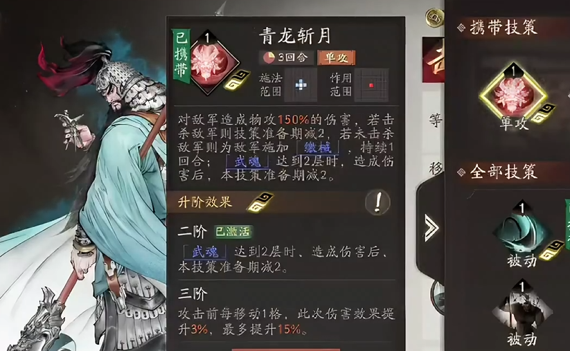 其次就是技能的选择。其实这一关对于角色们的技能限制并不太多,小伙伴们只需要看一下自己平时比较喜欢什么样的打法,然后再为这些角色选择合适的技能就可以了。不过关羽这个角色小编建议一定要带上青龙斩月,这是他的招牌技能,并且如果施展之后没有成功击杀敌军可以为其增加一个缴械效果,为其他的队友提供更好的输出空间。而在装备上,小编建议为每个角色都带上有暴击词条的装备,这样的话能够更加顺利一些。