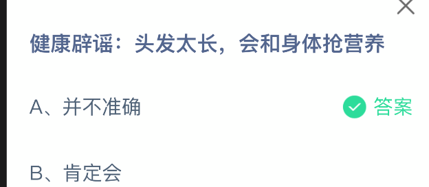 以上就是健康辟谣:头发太长,会和身体抢营养,支付宝蚂蚁庄园2025年11月6日答案最新,更多精彩内容,请点击关注更新!