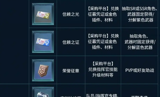 武器与模组养成道具也可以盯着武器兑换币,还有模组数据单元,主要就是靠深红武装副本。深红武装每一周打三次,不仅可以获得两个道具,并且还可以出活性合金锻料。这可就是医疗还有工程专精再提升的关键材料,必须要优先去刷满。还有专精以及突破材料,不同职业的队员所需要对应的材料也是有所区别的,千万不要搞混了。实训补给箱,还有实训仪都可以通过打副本拿到,队员以及指挥官战术专精的突破全部都会靠他。