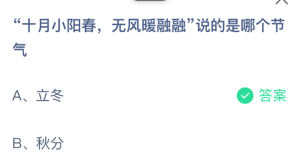 “小春此去无多日,何处梅花一绽香“描写的是哪个节气的景象?支付宝小鸡课堂开课啦!每天花一分钟答题赚饲料,喂喂小鸡就能贡献爱心啦!轻松又意义十足!2025年11月7日蚂蚁庄园的小鸡课堂题目正确答案是【立冬】,小春此去无多日何处梅花一绽香描述立冬时节的气候和景象。