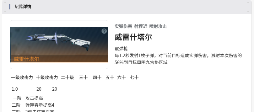 装备和插件方面不可以忽视的就是威雷什塔尔,每1.2秒就可以射出一发,而且还可以造成50%的溅射伤害,完全可以符合群攻的需求。在提升到高阶之后,还可以增加侧击的伤害,可以进一步的强化输出。插件优先去凑专属的插件,例如3号插件就能在大招期间有效减伤23%。4号插件可以让战斗技能在击退时还可以回复70点的大招能量。另外还需要搭配5号插件以及6号插件,这4个专属插件在凑齐之后,那攻防能力自然就可以上一个全新的台阶。