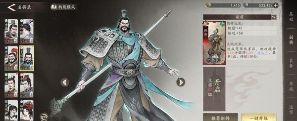如果大家想要福节台,首先就需要点开副将的图谱,之后把下面两排的副将全部点亮能点亮的会更好,可以帮助大家获得一定的属性加成,只要全部点亮之后,还需要尽可能的把中间,红色品质的韩浩角色点亮,玩家们可以观察中原地段的位置之后,把夏侯惇换上韩浩,接着就需要来不断地推进主线的任务,有的关卡非常的简单,只是一个剧情走走过场,帮助大家熟悉游戏中的功能,还可以送给大家一定的新手礼包。