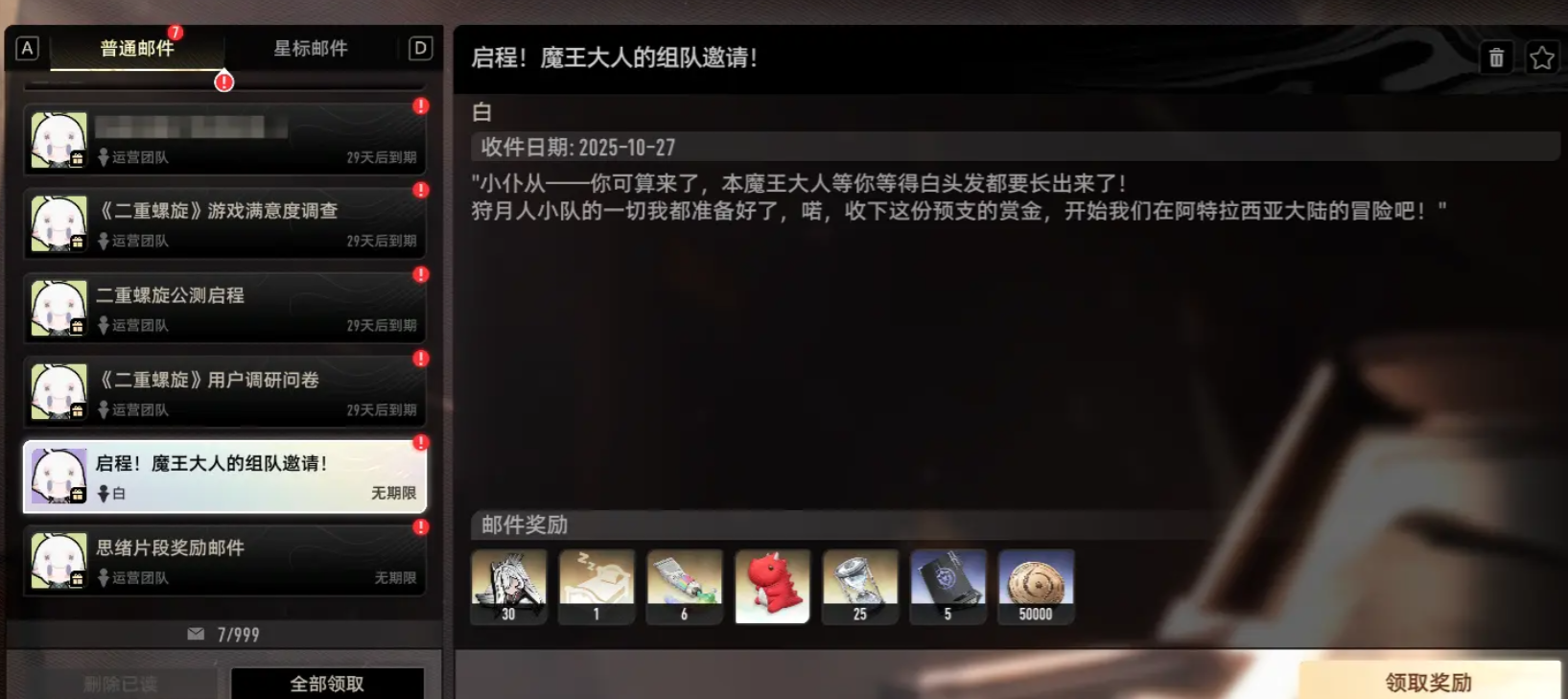 第二个方案是玩家进入到梦魇残声,即周常副本内,当新角色上线28天后,他的密函掉落将会直接进入到梦魇残声内,挑战成功后,玩家有一定概率,可以取得角色密函和角色碎片。
