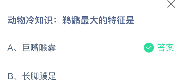 以上就是动物冷知识:鹈鹕最大的特征是,支付宝蚂蚁庄园2025年11月8日答案最新,更多精彩内容,请点击关注更新!