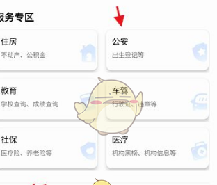 3、点击左下方的办事,找到服务专区,点击公安进入
