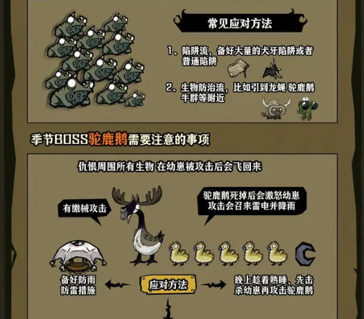 春季是一个较为舒适的季节,适合耕种和搜集物资,当然也要提防绵绵细雨中隐藏的杀机频繁的降雨会加速植物生长,也会给玩家带来各种不便。