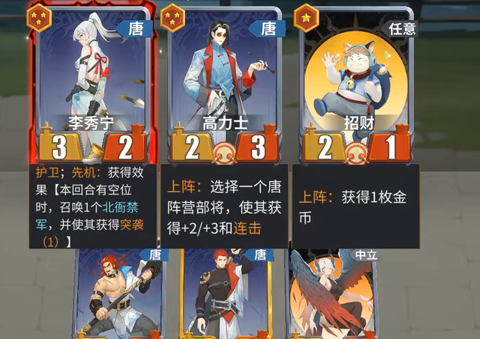 杨玉环、李秀宁以及初始单位北衙禁军均具备召唤禁军的能力,而这些被召唤出的禁军单位自带突袭特性,能够在战斗初期迅速发起多波攻势。这种机制极大提升了整体出手次数,使得鼓舞效果得以反复触发,形成正向循环。