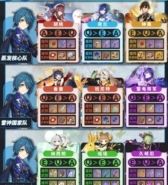 雷神国家队:行秋+香菱+班尼特+雷电将军