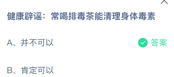 以上就是健康辟谣:常喝排毒茶能清理身体毒素,支付宝蚂蚁庄园2025年11月13日答案最新,更多精彩内容,请点击关注更新!