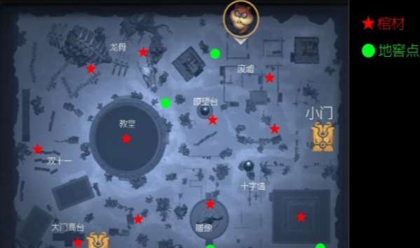 红色五角星为棺材的点位,玩家可以到这些位置清理藤蔓开启棺材