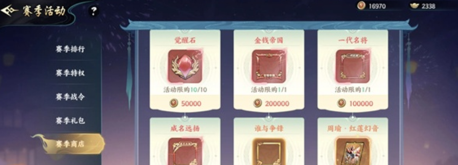 对于月氪1000元左右的玩家来说,赛季币一般能获得40万左右。赛季商店里应该优先买头像框和皮肤,这两样能提高游戏里头像的外观以及一些附加属性。之后可以考虑兑换金钱帝国、一代名将等基础而重要的道具,可以提高资源获取以及武将星级。对于比较理性的玩家来说,在这种情况下,建议优先兑换皮肤,尤其是那些稀有且外观独特的皮肤,这样既可以提升个人战力,又可以给角色带来额外的加成。到了后期,当赛季币积累到一定程度的时候,再去提高武将的能力。