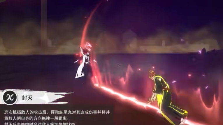 当阿散井恋次把敌人的攻击给抵挡主以后,在次会晤蛇尾丸砍向对手时能够给其造成伤害并且还能降敌人朝着自身的方向给拖拽一段距离,封灭反击命中对手时,百分百的会给敌人附加上怯懦的状态。