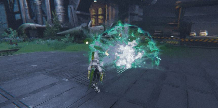 当目标敌人身上有两层寒冷附着或自然附着时,可触发萤石的连携技,让萤石跃至空中对敌人进行一次蓄力射击,并对目标敌人引发一次爆炸。该连携可由萤石连丢两枚炸弹后自己发动,也可由其它干员提供两层附着后触发萤石的连携技,丝滑地将萤石更换上场。此外,本次连携技所造成的爆炸效果,会引爆敌人身上的附着属性,同时还会根据该敌人原本的附着属性,再次向它施加一层对应属性的附着。
