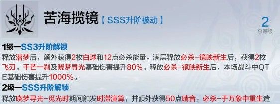 伤害方面提高核心伤害,同时解锁10倍qte伤害被动。综合来看是提升最夸张的2s3阶级。