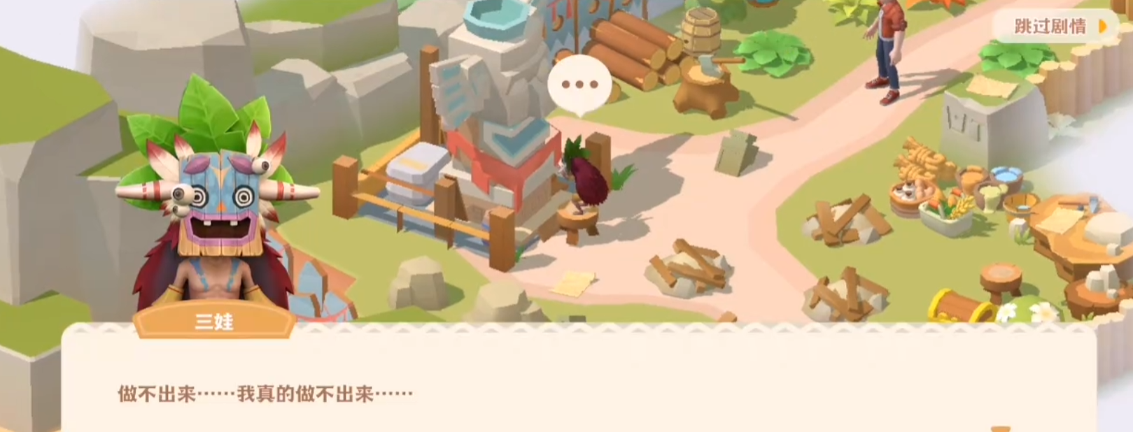在帮助妮娜建完房子之后,我们会来到一处奇怪的土著雕像旁边,我们会看到三名土著人在雕像旁边,我们与之对话,能了解到他们是想要完成雕像,需要收集木料木材来建造雕像。我们去旁边地上类似废墟的地方,会发现有“收集”的选项,在获得总共60块木头之后,我们便可以帮助这些土著建造完雕像,它们也就会顺势加入我们。