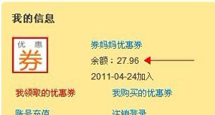 1、使用支付宝充值到券妈妈,充值后,账号中心右侧会看到账号余额。