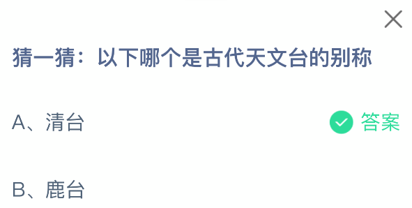 以上就是猜一猜:以下哪个是古代天文台的别称,支付宝蚂蚁庄园2025年11月20日答案最新,更多精彩内容,请点击关注更新!
