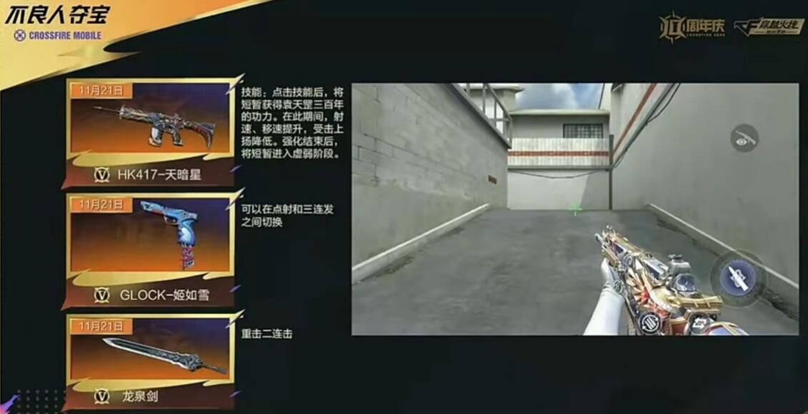 其实在这次夺宝活动当中,玩家发现了三款专属的联动武器,这三款武器实力各不相同,比如主武器是HK417天暗星,它作为自动步枪,综合性能,可以直接将其跟朱雀进行比较,不过这个朱雀版本是升级版本,要说这个武器能够有效的提高生射击速度,并且在移动速度方面也会有所提高。姬如雪在设计的时候是以格洛克作为基础条件,当然它也融入了角色主题元素,要说该武器能够实现三连发,也是英雄级手枪。龙泉剑的攻击速度是中等水平,但是它的整体表现力是比较均衡的,可以运用在近距离作战当中。