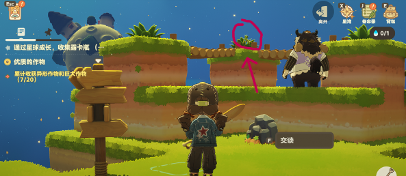 作为新玩家,在刚刚进入到游戏时,那背包肯定就是空的。进度条就会提醒大家,必须要选择多探索多收集。打开备忘录之后就可以看到累计收获异型作物要达到20个,这就意味着接下来的一段时间内,除了需要捕捉昆虫之外,还需要去捕捉一些特殊的物品。玩家在进入游戏的交汇处,看到这一个地方并没有明确的任务指引,但是这里就隐藏着一些小惊喜。除了那只正在不停徘徊的螳螂之外,偶尔还可以遇到一些可以交谈的npc。