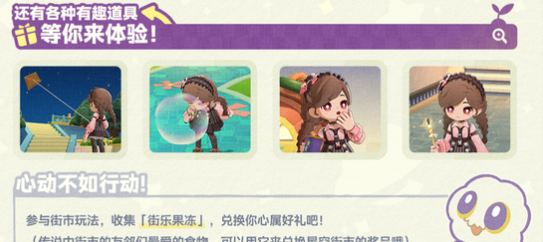要想解锁这里的玩法,那必然就需要准备通行证,而这个通行证就是街乐果冻。这本身就属于一个被大家偏爱的宝藏零食,其实就隐藏在每一次的互动和挑战中。一天来到公告栏之后就可以找到古多曼,还可以去领取专属的交友任务。或者也可以和陌生的旅人一起结伴,然后去完成小目标,可以把那些晶莹的果冻直接放入到其中。如果大家喜欢律动,那不如就直接去找阿菜报名,可以去挑战舞蹈大赛。不仅可以收获快乐,还可以赢取60个果冻,确实是很有成就感的。