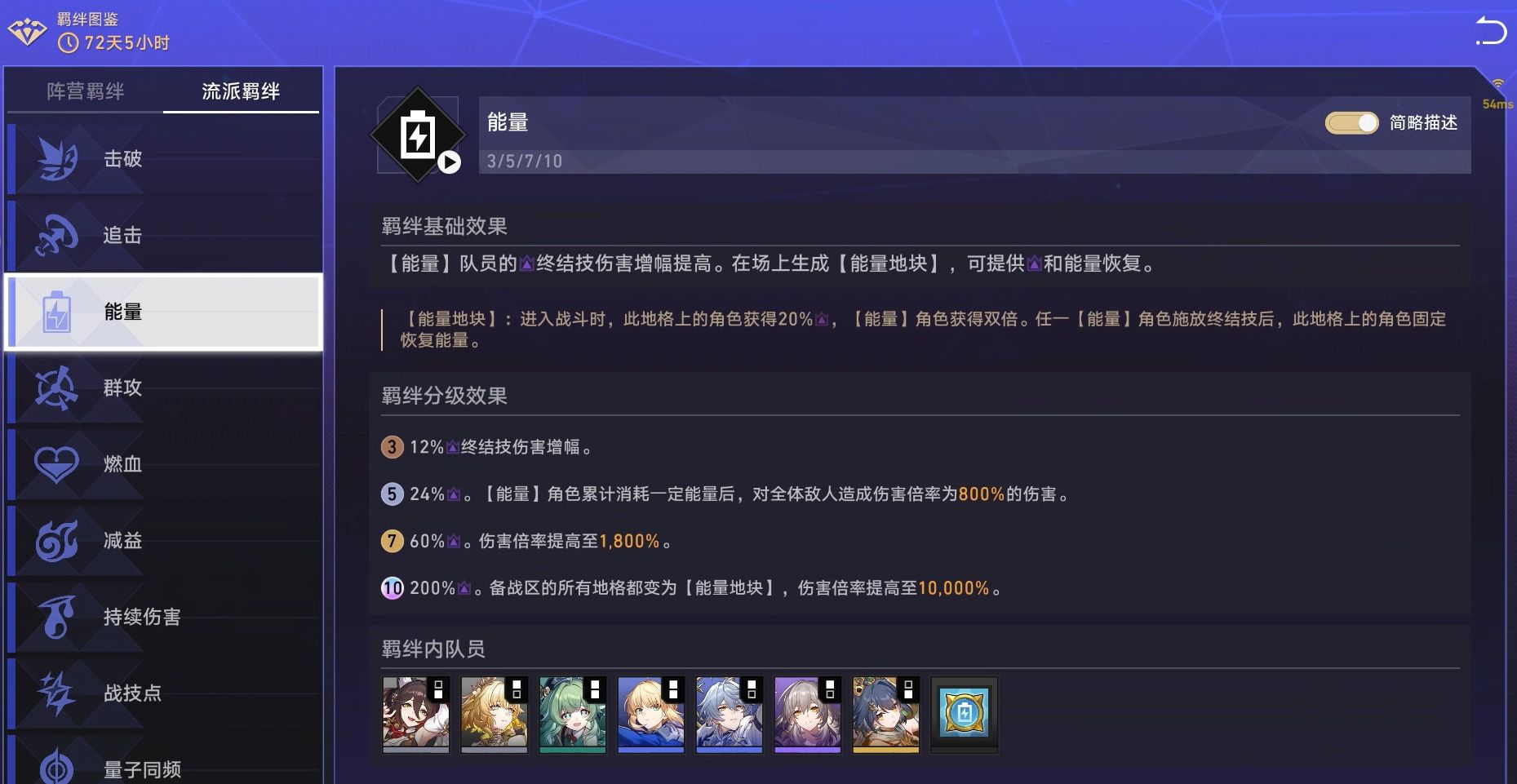 能量羁绊是很泛用的羁绊效果之一,它可令角色更频繁地开出大招,与任何羁绊搭配都有着极高的适配性。目前该羁绊效果最好的组合是6能量3昼之半神,通过无限给阿格莱雅回能来令她完成多动,配合上两双反重力的叠层效果和阿雅自身的速度转伤机制,可令阿雅打出极为夸张的伤害。