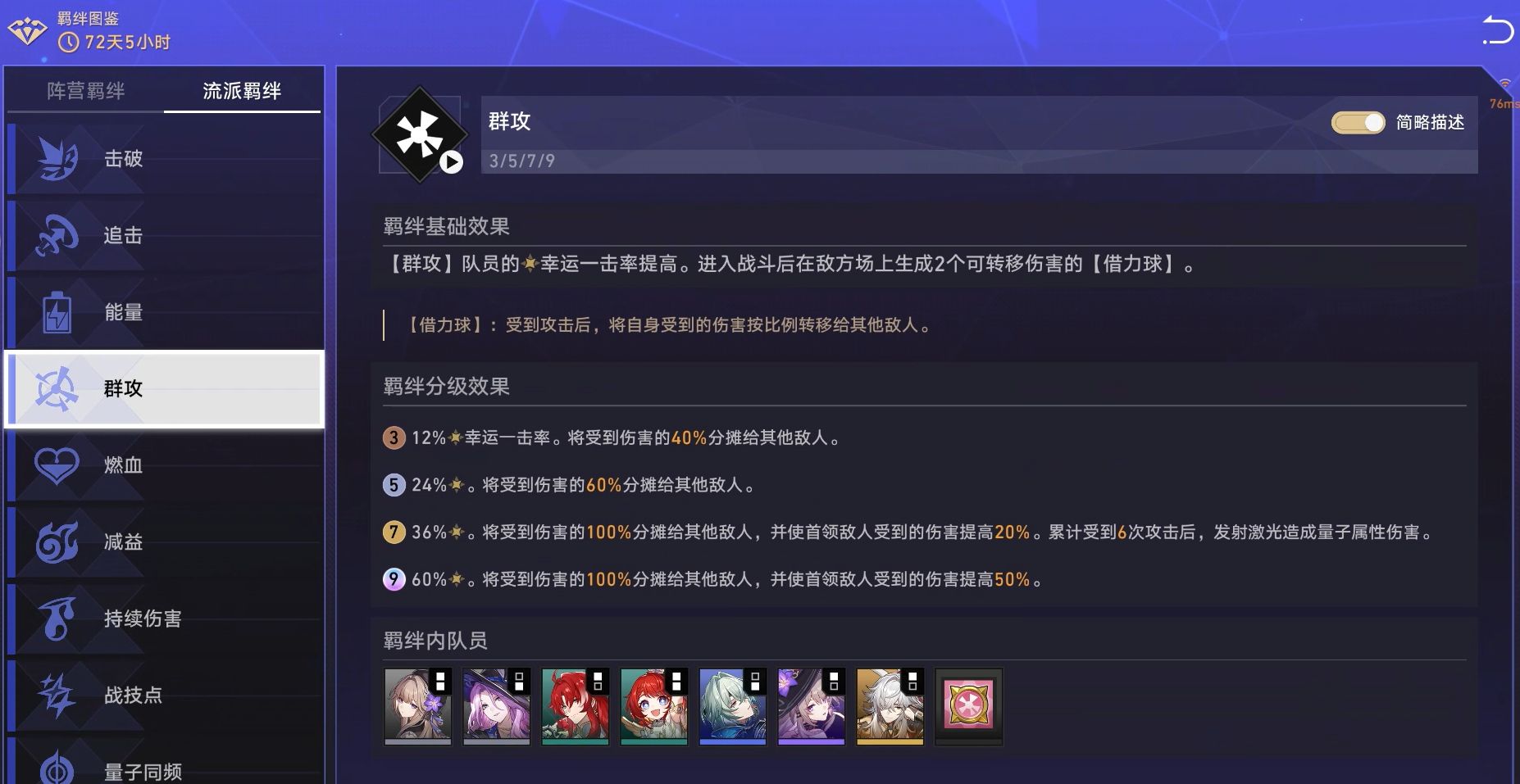 货币战争里的群攻羁绊是高伤害代表羁绊之一,有着成型快、转型方便的特点,前期拿到小黑塔、翡翠和缇宝就能成型,若是能在后续补上大黑塔、景元等角色组成7群攻效果,那伤害会变得特别的夸张。同时,群攻羁绊也是玩家每周刷周奖励最快的羁绊之一,实用性很高。