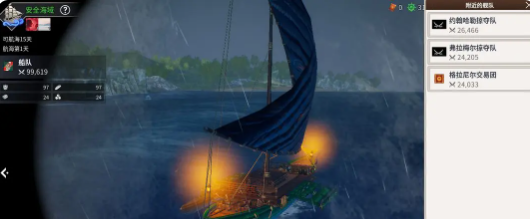 自动战斗是在15级的时候解锁,在解锁之后,玩家就可以自由的体验。在航海时可以看到视野中的这些船只,然后点一下就可以切换到观察模式。这里就可以看到敌方舰队的实力以及我方的物资储备。千万不要选择瞎冲,可以先看一下敌方的数值,还有我方的续航能力。如果差距比较大,那不如先选择社交或者是直接选择绕路。要是实力相当,可以直接点击战斗,马上就可以发起宣战。如果同一个海域的舰队比较多,还可以通过快捷菜单去调整名录。