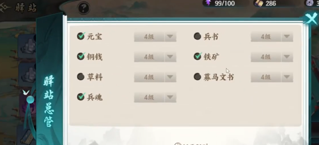 玩家一开始就应该注重资源的分配,包括驿站资源。这就是前期发育的主要核心命脉。一马作为核心资源的产出点根本就不需要追求太多,有两匹就已经足够可以满足日常的消耗。每天就应该保持1~2个小时的在线时长,然后把体力全部的拉满,不会浪费时间,也能保证资源的产出。前期驿站资源等级可以直接提升到四级,这一个等级就是性价比比较高的选择。如果拉太高,就会导致铜钱紧缺,后续兵种的培养也会受到影响。