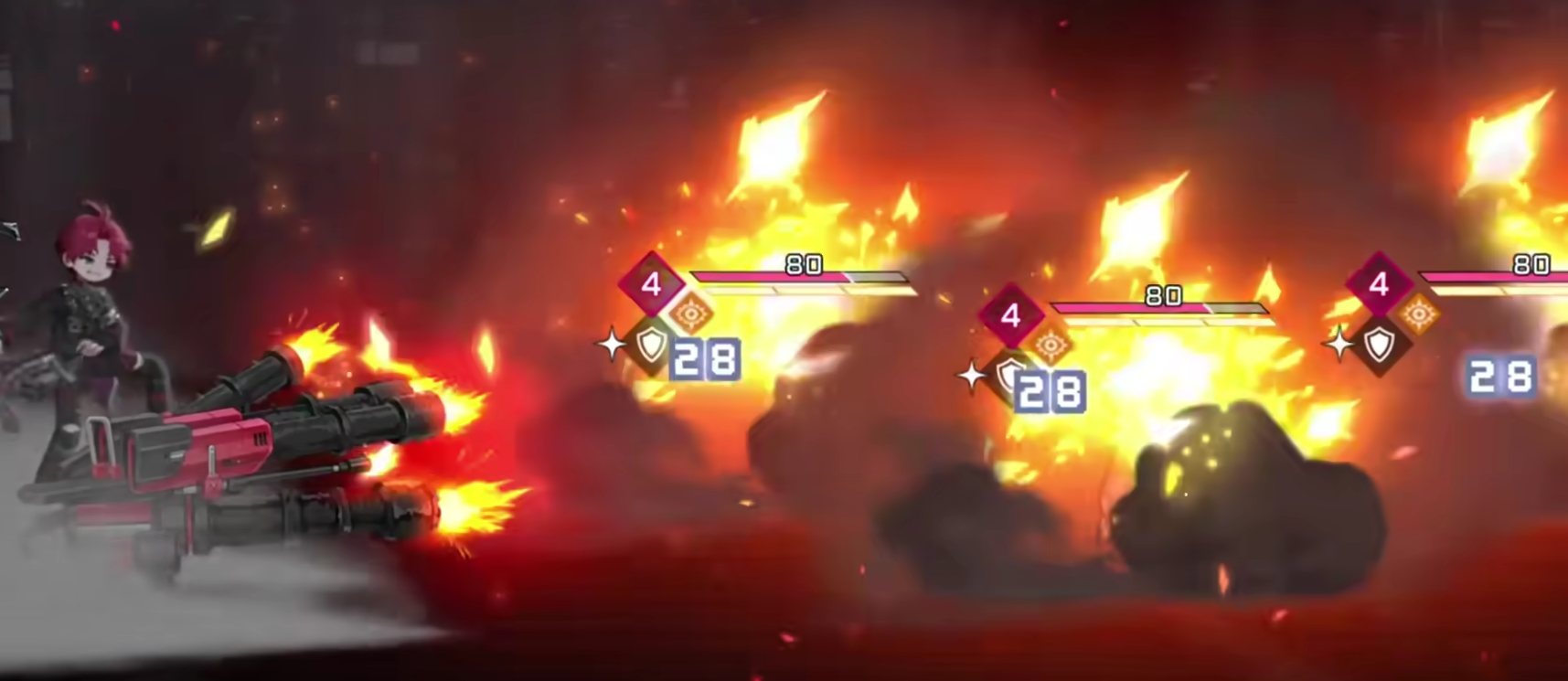 而在于它的技能之中,火焰斩击有着非常不错的清场效果,对敌方的所有单位都能够造成比较高额的伤害,而他本身的大招叫做全弹发射,当在群怪中的场景玩家们能够很出色的得到大范围的爆炸输出,注意卢卡斯有着5种类型的弹药,每个弹药也依然有着不同的特点,所以玩家们需要遇到敌人前,需要先了解敌方机制,再针对性地使用弹药,这样才能够使输出的效果更好。