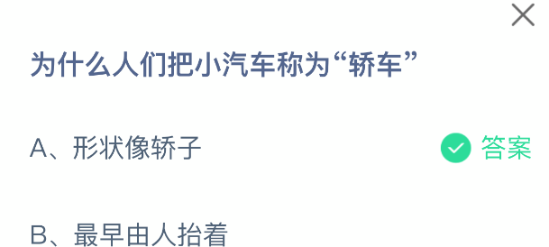 以上就是为什么人们把小汽车称为“轿车”,支付宝蚂蚁庄园2025年11月25日答案最新,更多精彩内容,请点击关注更新!