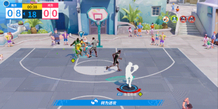 成功触发“两败俱伤”后,2米范围内的敌方单位在1.5秒内将更容易被封盖。但需注意,该技能存在代价:一旦抢断成功,自身在下一个进攻回合中的投篮命中率将会下降,属于用短期火力换取关键球权的战术选择。在进攻端,他的“进攻大旗”技能能根据队友所处区域激活对应增益——中距离区域提升中投命中率,外线区域提高三分命中概率,每次激活还能重置突破技与终结技的冷却至0秒,使其能够连续发动攻势。
