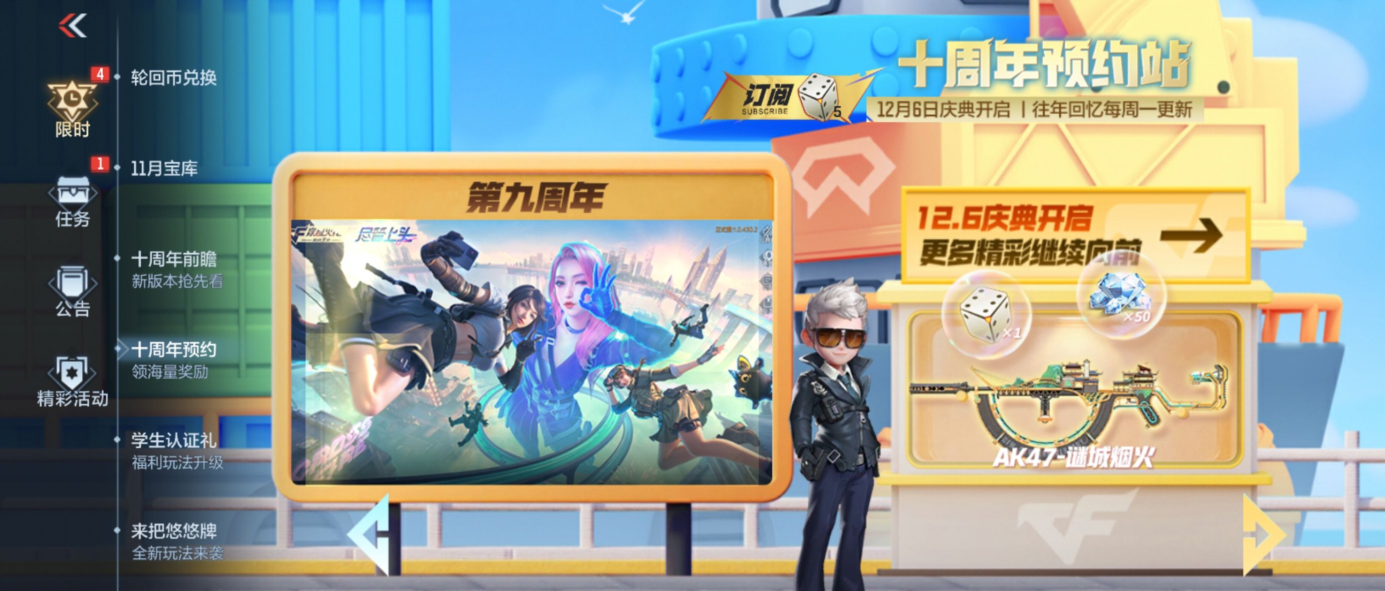 起初王炸黑市活动是从2025年9月1号开始,一直持续到2026年的6月30日,这样的话就能够给大家长时间的去体验,现如今cf手游又推出了10周年的活动。王炸黑市的活动时间正好覆盖了为期一个月的10周年活动,此时福利大幅度的上升,比如玩家已经发现这时候推出了王者级别的八一是王者之尊,另外还会自带三防绝版的角色,这样的话,能够让玩家在体验该游戏的时候,有了新的体验感。