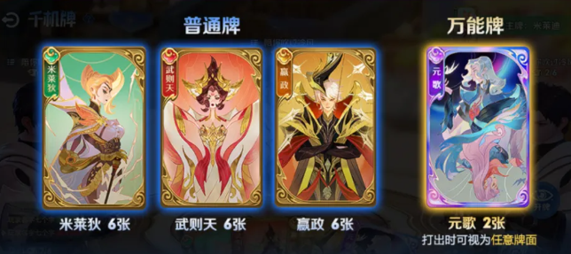 不同的积分所对应的称号也是有所区别的,达到1000个积分就可以获取源流之子的眼镜装饰。玩法规则还是很简单的,这和个人的运气有关。那接着就说一下游戏中的主牌里面有三张普通牌每一个都有6张,然后加上元歌,那一共就是20张。如果是4个人一起去打,每个人都可以拿到5张,所以此时大家就需要通过自己的牌去判断别人手中有什么样的牌。每一次出牌最多三张,不管你出的到底是什么,在敌人那一边马上就会默认出是主牌。可能这么说,大部分人有一些不理解,那今天就为大家举例说明。