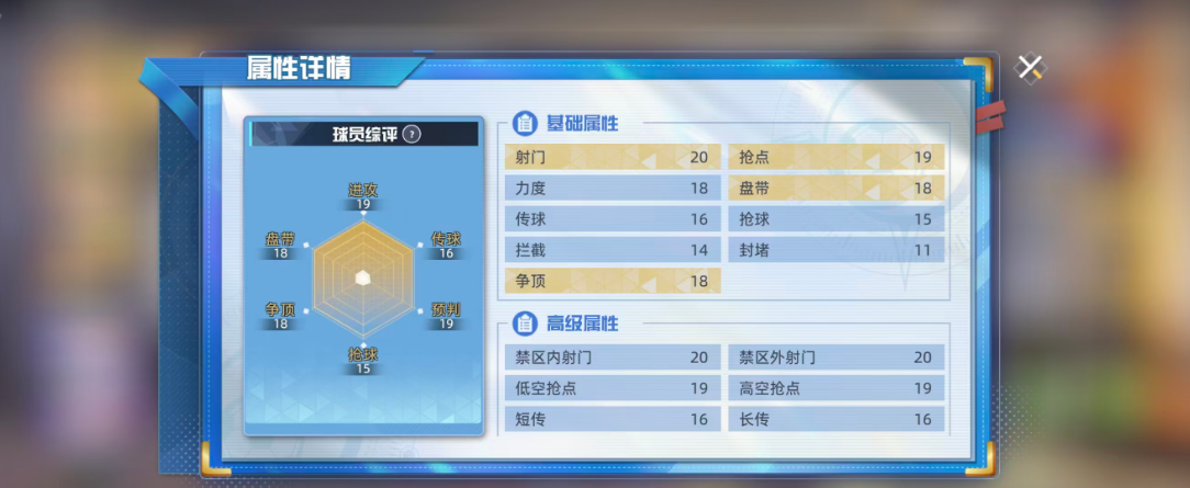 游戏当中来生哲兵是SR品质角色当中非常少见的一个定位球员,他一般是放在影锋这个位置上面用的,作为控球组织当中比较有能力的球员,后期实战里面其实用他的各种机敏动作进行抢点也是可以的,那么目前根据来生哲兵这样的定位来看各方面属性的话,在其中主要用到的就是射门20、抢点19、盘带18、争顶18这几个属性,通过评分数值来看其实整体的均衡性还可以,而球员的总体评分也有164,所以这样的评分就说明他不仅是一个有自身特性的球员,也是有不错上升潜力的一位球员,但是在整体属性六维图当中,大家可以看出他的弱点就是抢球,因为只有15的分值,所以在上面可以用来生哲兵来抢点,但是抢球的话还是用其他的球员会更合适一些。