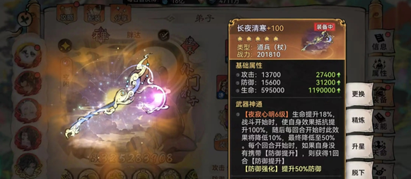 “长夜清寒”在为元润提供稳定的每回合50%的防御提升buff以外,还能在其满星时为其提供无法被驱散的100%效果抵抗。加上元润自身的天命觉醒技能以及法宝炼化,面板300效果抵抗可以说是轻轻松松。进入对局后的效果抵抗超过400%几乎没有任何debuff可以对元润进行影响,可以让他轻松一回合在动,并且再给队友套盾的同时可以分享20%也就是80的额外效果抵抗给队友。