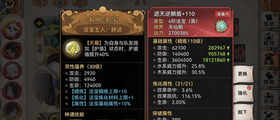 现在该来说说看我们的黑科技了,套盾流熊猫法宝选择只有一个,那就是带鳞的遮天盾胚。(推荐四阶水麟+三阶藤进行制作,炼化全部效果抵抗)