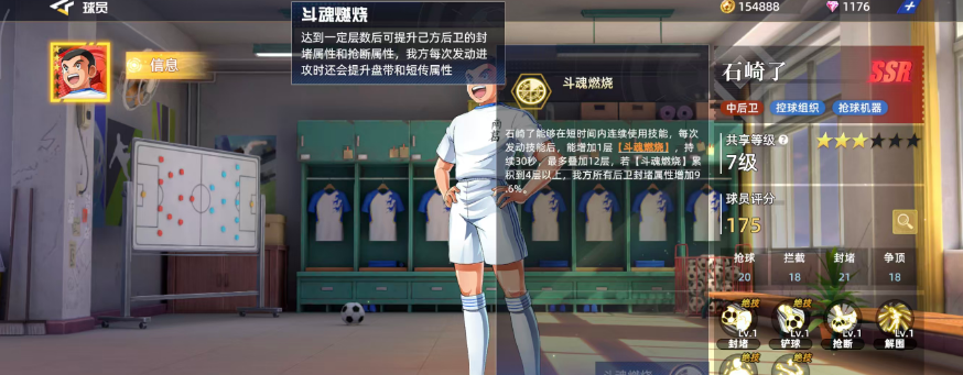 最后再斗魂燃烧这个技能上面,石崎了能够在短时间内连续使用这个动作,而且每次发动技能后,能增加1层【斗魂燃烧 状态,这个状态持续时间非常长,足足有半分钟,还可以叠加到12层,如果斗魂燃烧的状态在招合理累积到4层以上,就会给我方所有后卫都带来封堵属性增加9.6%的增益,且在斗魂燃烧在达到一定层数后可提升我方所有后卫的封堵属性以及抢断属性,此时队友每次发动进攻,还会提升其中的盘带和短传属性效果。