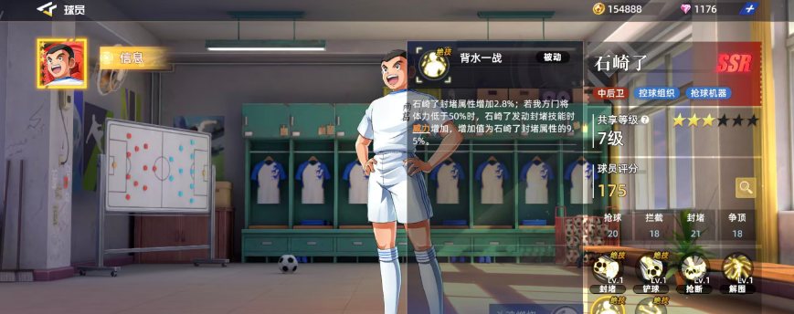 石崎了目前属于SSR球员当中一个适合用作中后卫上面的球员,本身的强度就在于控球组织的效果比较好,而且其中根据抢球的属性来看也是有不错的招式可以用的,他的总体球员评分达到175,而其中比较突出的有抢球20、拦截18、封堵21、争顶18,其中的封堵效果最好,所以把他放在后卫上面用的话,这个属性能够带来的封堵优势也可以为我方作一定的保障,最后对方要进球的话,石崎了在这里也可以利用封堵来将球给拦下来,其次就是他的抢球效果也不错,所以可以跟封堵的动作联合起来,先将对面踢过来的球给拦住,然后利用抢球的效果来夺过球权,这样的优势也是比较符合后卫的一个需求。