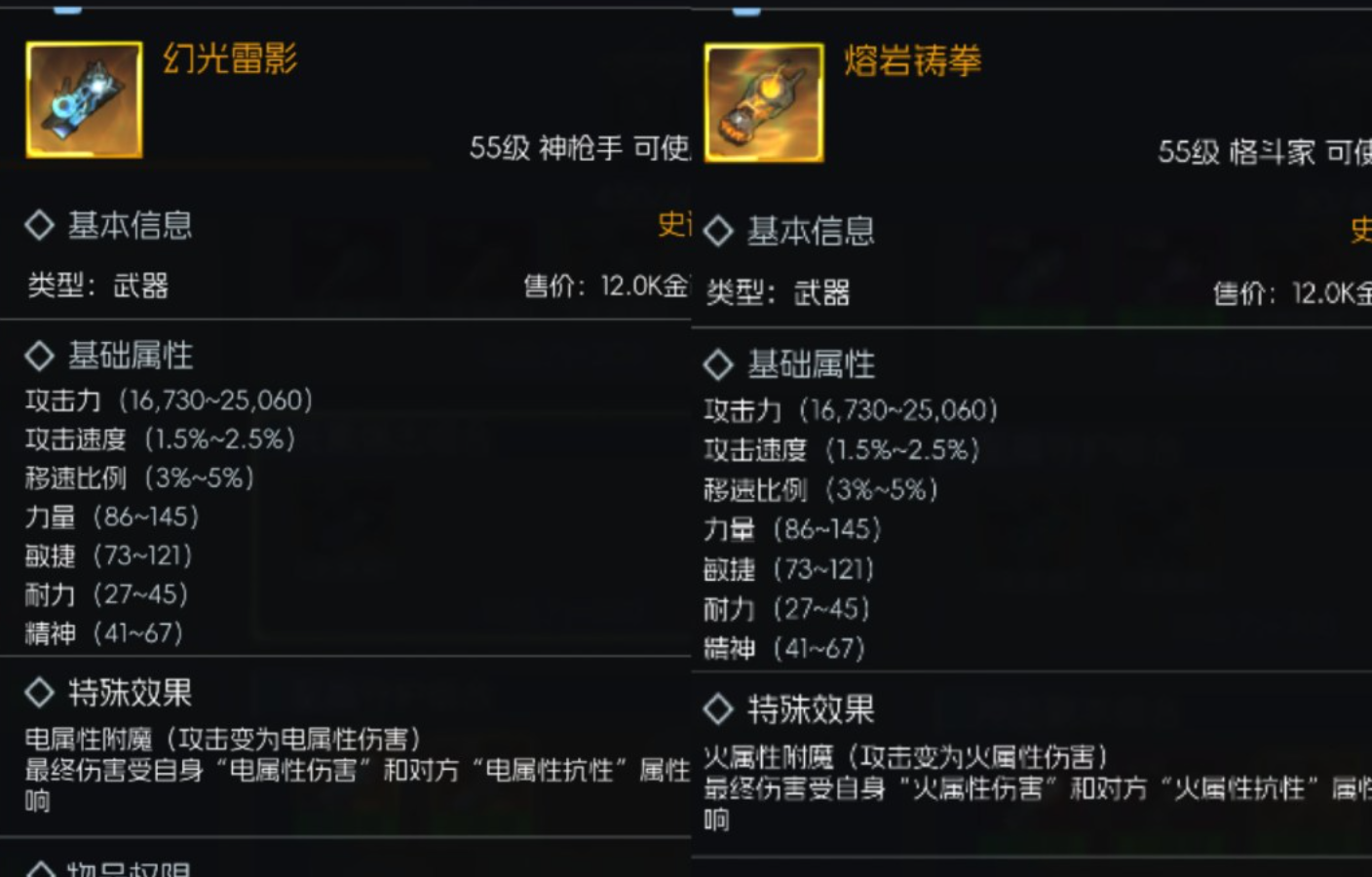 基础武器是玩家进入55级阶段的过渡装备,代表性的有汉娜-裂空梦影、黄帽-龙骨之魄。此类武器的基础属性比较均衡,可以通过普通打造或者深渊副本掉落获得,性价比较高。特殊效果分别是流血和减速,虽然伤害力小,但是在初期副本以及PVP中却能发挥作用。入门装备可以积累材料、获得经验,为之后获取更高级的装备做准备。