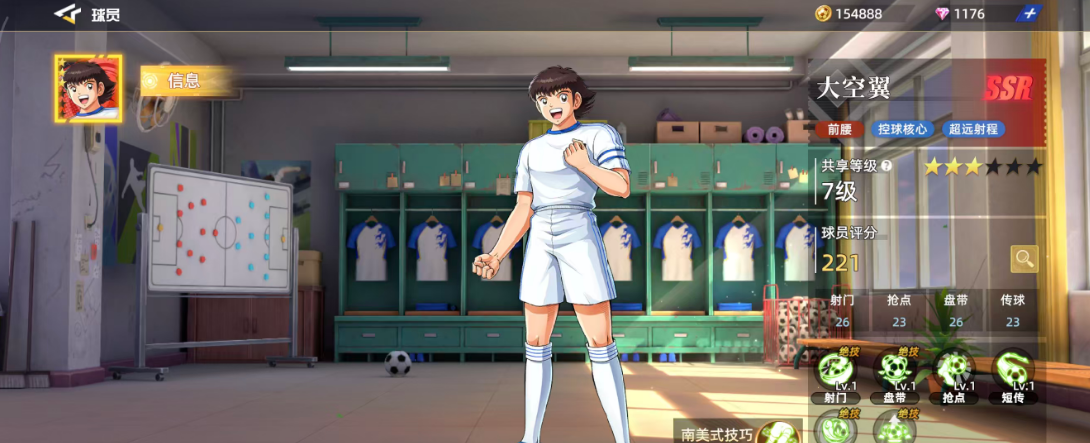 首先为大家介绍的第一个角色就是游戏当中目前最强版本当中的红卡角色大空翼,大空翼他作为一个前锋角色的话,目前带来的能力都是带有足够突破的,而且他利用自身的盘带动作可以快速过人,那么在突破了对面的防线之外,它带来的抽射动作可以在中远距离里面快速获取比分,所以由太空翼他来开启比赛的话,他操作的效果能够带来的核心得分优势比较大,就是这个角色可能在操作难度上面有一些比较难控制,但是如果是系统控制的话,那么大空翼他上场带来的整体能力是非常强的。