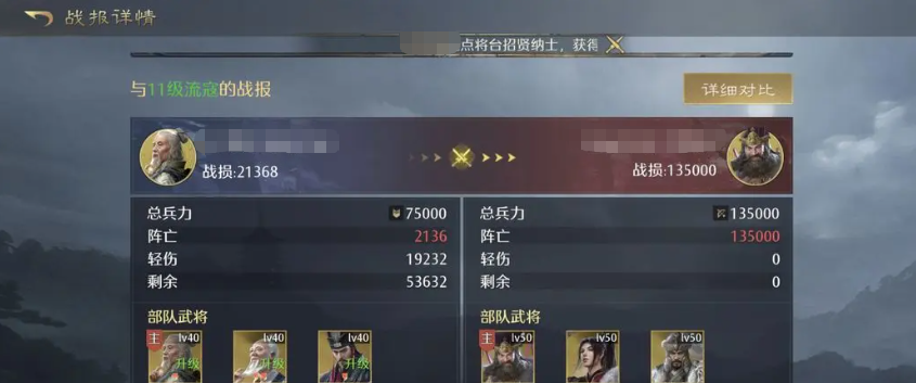 比如说华佗这里可以带的是轻兵急行、乐善、奋鼓,而左慈的话可以带并气积力、活力、固阵,如果是张角的话,这里可以带的兵法是惜兵爱民、活力、固阵之类的兵法,有足够的兵法加成,可以为这个阵容带来足够的标准提升效果,相应的初期变化角度来说的话,其实它带来的整体能力效果上面是非常适合参与前期开荒的,在战报里面大家也可以看到它的一些详细对比,以及其中胜利的概率有多大。