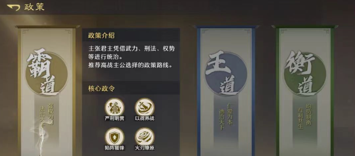 由此可见,霸道政策的玩法主要针对的是重视战斗、操作的高战玩家。在战斗中,玩家需要依靠强大的武力和合理的策略来击败敌人,霸道政策也为这样风格的玩家提供了强有力的支撑。后期团战的时候,霸道政策所带来的增益效果会提升玩家的战斗力。但是平民玩家在使用霸道政策的时候就会遇到一些困难。因为霸道的核心优势在于战斗,而且需要玩家具备较高的战斗力,战斗力不足的话就无法体现出霸道政策的优势。对这些玩家来说,选择王道或者衡道等其它政策会更容易也更合适。