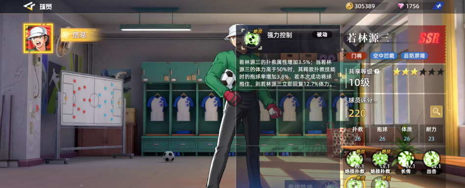 若林源三在游戏中是一位门将球员,这个定位的球员现在在红卡当中可是很难找的,所以他自然在门将能够带来的效果上面有不错的后防屏障效果,而且利用这个球员的技能大家也可以进行一些空中拦截的动作,在球员评分达到220的基础上面,大家就可以判断他的强度目前是处于比较受欢迎的程度,基础的属性效果当中抱球26、体质26,耐力23,补救26的分值都代表了可以用这些动作带来球员优势,而且在自身的六维图当中他的所有数值都超过20,目前所有属性当中基本没有低于20分以下的,所以他绝对是非常热门的一个门将选手。