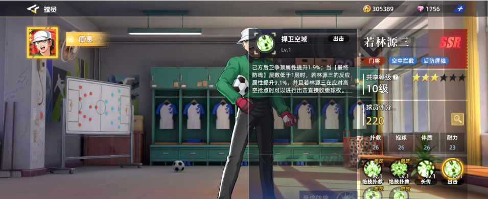 捍卫空域:这是若林源三如果想要主动出击的话就可以用到的一个技能,使用的时候大家要注意,一般是在己方后卫争顶属性上面有所提升,提升的数值只有1.9%,但是在其中当【最终防线】层数低于1层时,若林源三的反应属性提升9.1%,并且若林源三在应对高空抢点时可以进行出击直接收缴球权,所以利用这个技能大家夺过球权的机会非常大,建议大家可以放在一个关键的时机使用。