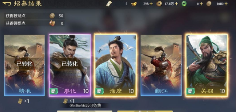 游戏的抽卡保底条件是20抽保底橙卡。但是从玩家的实际反馈来看,很多玩家表示在抽到第十五到十六张卡的时候就可以触发保底机制,获得稀有的橙色武将卡。这就意味着尽管官方规定保底20抽,但是玩家的抽卡运气一般会在较少的抽取次数内拿到想要的卡。此机制可以给新手玩家一定的保障,在游戏刚开始的时候尤其如此。前期抽取之后玩家就可以获得强力的橙色武将,为之后的游戏进程打下基础。前200抽不会出现相同的武将,这一规则大大降低了重复抽卡的无用性,使得玩家可以在最短的时间内组建出多样化的阵容。