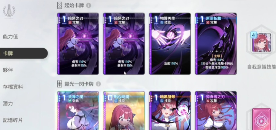 那么后期在独特卡牌效果上面,她可以利用点心时间这样的卡牌来消灭自己手中的手牌,这样的话还会为她得到抽取的一次护卫,和在治愈效果上面也会额外带来一定数值的恢复,在选择手牌的时候,大家后期还可以选择一些低费的攻击卡牌来增加自身的伤害量,而且在后期猎食者之刃这个攻击卡牌上面,带来的不仅有伤害百分比的提升,还可以根据回合之内我方的实际数值来进行积累,目前在卡牌的伤害量以及护盾获得量还有治愈量上面,都可以根据自己的潜力来进行提升。