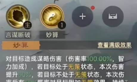 其次可以搭配一些加速整体阵容输出次数的能力进行提升,这里可以选用的此类兵法就是集气,这类兵法带来的效果当中可以带来一定的辅助效果,这里就可以考虑善谋这类兵法,这类兵法提高的智力属性对于诸葛亮来说是比较用的,而且从其中全面提升的输出效果都是可以带来不错的,这里根据军略类型作为主要的选择类型的话,只要是大家兵力数值上面大于50%的时候,使用其中的主动技能都可以对敌人的伤害带来白10%左右的提升效果,所以根据这样的效果来说,诸葛亮在其中可以带来的谋略阵容加成就比较多。