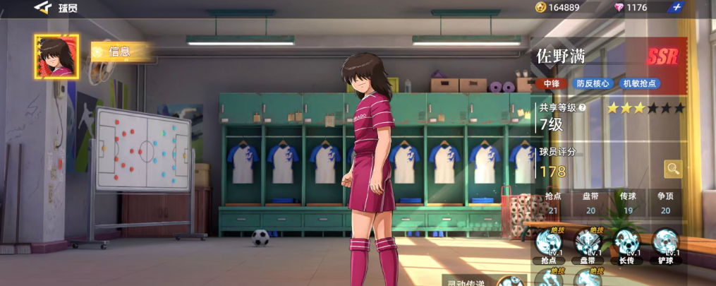 那么这里第三个为大家介绍的前锋就是佐野满,佐野满这个球员目前放在游戏当中进行使用的话,是固定放在中锋或者前锋位置上面使用的球员,那么使用佐野满带来加成的情况下,他可以带来的能力上面通过核心效果以及抢点的能力可以带来比较高的数值,当然他在红卡当中带来的评分没有前面两个球员那么高,但是他在同类球员当中抢点的这个数值达到的比分是比较高的,而且他在这部分动作上面可以带来的优势也确实是有一定技术的,后期使用自身的技能效果可以带来的顺射技能可以根据抢点带来足够的加成,而且他在脱手率达到6.8%的加成之后,那么抢点成功的时候获取球权的一个几率就非常大了。
