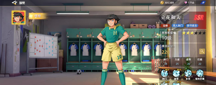 首先比较推荐的是立花和夫,立花和夫不仅可以作为前锋使用,还可以当做边锋来使用,在游戏当中作为一张红卡,他其实可以带来的能力上面可以进行双人射门以及防守反击,目前他在整体评分上面带来的叠加能力是非常强势的,而且后期还有两个被动可以触发,通过他的威力带来射门的话,后期再如果没有受到抢球影响的话,增加的射门属性也是可以为我方带来更多的倍力增加能力的,那么其实这里跟立花和夫它比较类似的,还有一个立花政夫。