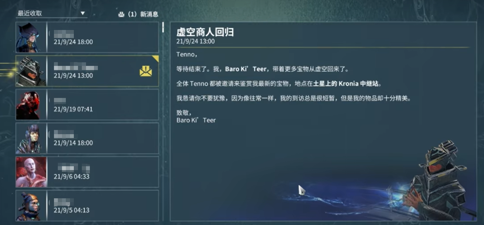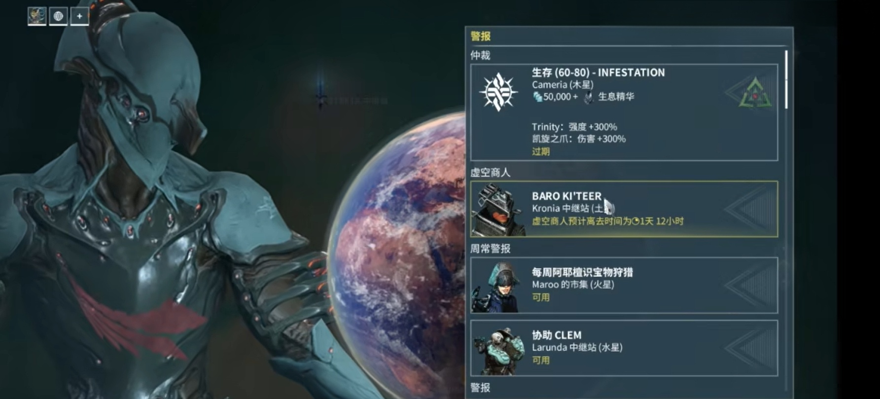 除了依靠地图定位外,还有多种方式可帮助玩家迅速锁定虚空商人的行踪。首先,在他抵达前,系统会通过邮件通知玩家具体的上线时间及所在中继站名称,部分邮件甚至附带一键传送功能,点击即可直达;其次,打开游戏内大地图后,各中继站中央广场会出现明显的商人图标,支持自动导航前往;此外,警报界面也会实时更新他的出现地点,确保玩家不会遗漏每一次交易机会。